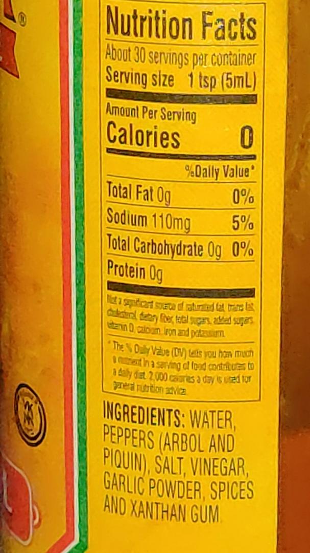 Cholula hot sauce nutrition facts