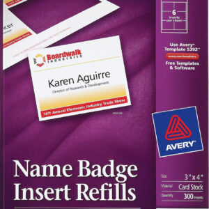 Avery Customizable Name Badge Inserts, 3" x 4", White, Packs of 300, 2 Packs, 600 Printable Name Tag Inserts Total (35392)