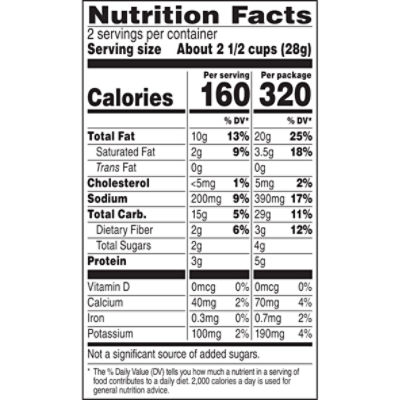 Carbs in smartfood popcorn. Calories in Smart Food Popcorn - Calorie, Fat, Carb, Fiber, & Protein ... Calories in Smart Food Popcorn based on the calories, fat, protein, carbs and other nutrition information submitted for Smart Food Popcorn. main content Live Healthy & Happy Smartfood ® Caramel & Cheddar Mix Flavored Popcorn Caramel and cheddar together is genius. Remember, smart is in our name. Nutrition Facts. Serving size. About 1 1/2 cups (28g) Calories. 140. % Daily Value*. Total Fat 8g. Calories in Smartfood White Cheddar Cheese Popcorn and Nutrition Facts There are 160 calories in 2 1/2 cups (28 g) of Smartfood White Cheddar Cheese Popcorn. Get full nutrition facts for other Smartfood products and all your other favorite brands. ... (28 g) of Smartfood White Cheddar Cheese Popcorn. Calorie breakdown: 57% fat, 33% carbs, 10% protein. Related Popcorn from Smartfood: White Cheddar Cheese Popcorn (0 ... Smartfood® Popcorn | Seriously delicious popcorn. Smartfood® Popcorn - America's favorite popcorn brand. Instagram Post: Too hot or just hot enough? Let us know in the comments and we might send you this Smartfood x @FranksRedHot pack!