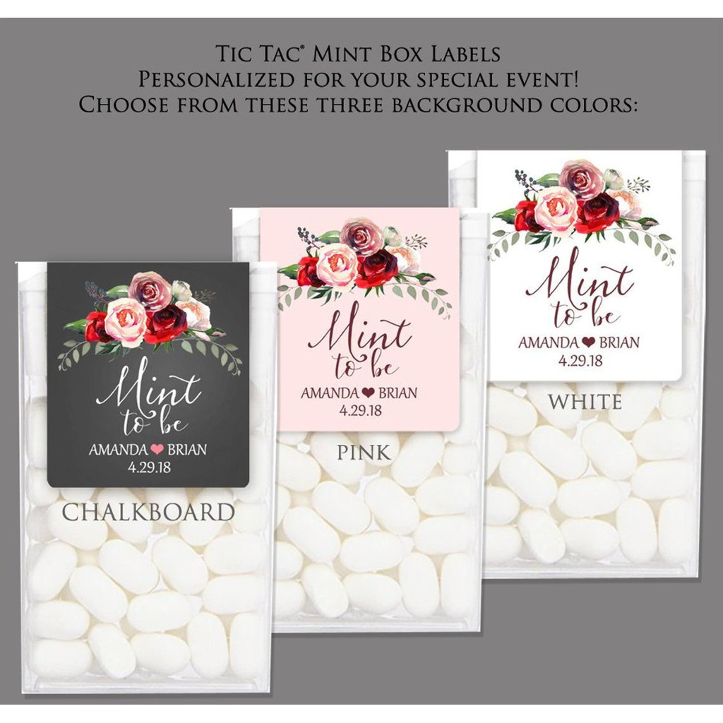 Wedding Favors Tic Tac LABELS Mint To Be, Bridal Shower Favors ... Thank guests with these adorable Tic Tac mint favor labels. Personalize with name and event. Perfect for bridal showers, weddings, bachelorette parties, etc. Printed on matte finish, self-adhesive labels. Size is 1-1/4" x 4" with rounded corners. Design is the same on the front and back. Fits over Tic Tac label on a standard 1oz. size container.