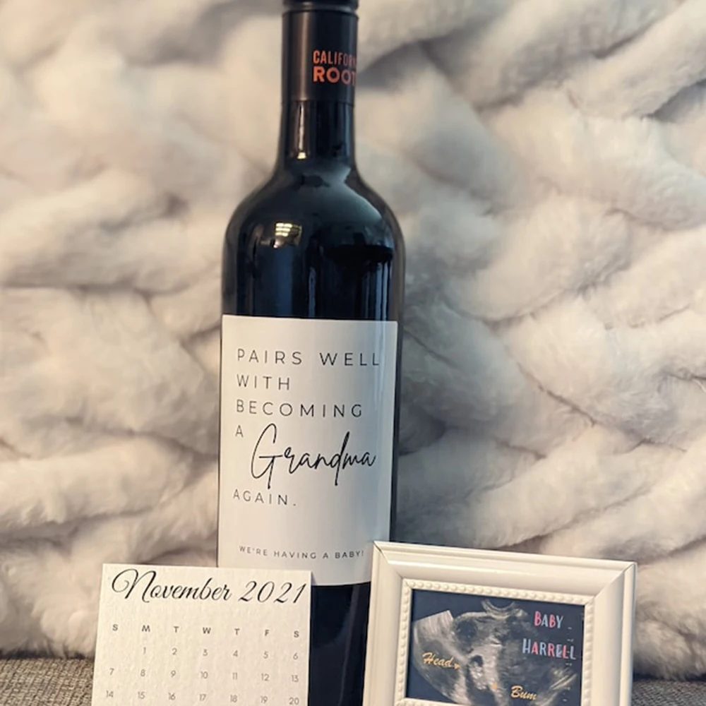 Wine label pregnancy announcement grandparents