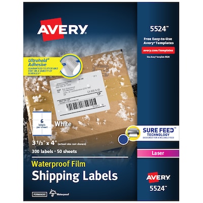 - Office Depot Avery® TrueBlock® White Laser Shipping Labels, 5264, 3 1/3" x 4", Pack Of 150 Item #365634 4.9 (163) + 9 More 1 / 12 Description Eco Conscious Quickly create your own personalized labels with ease using these Avery shipping labels. Print with confidence with Sure Feed Labels, designed for a more reliable feed through your printer.