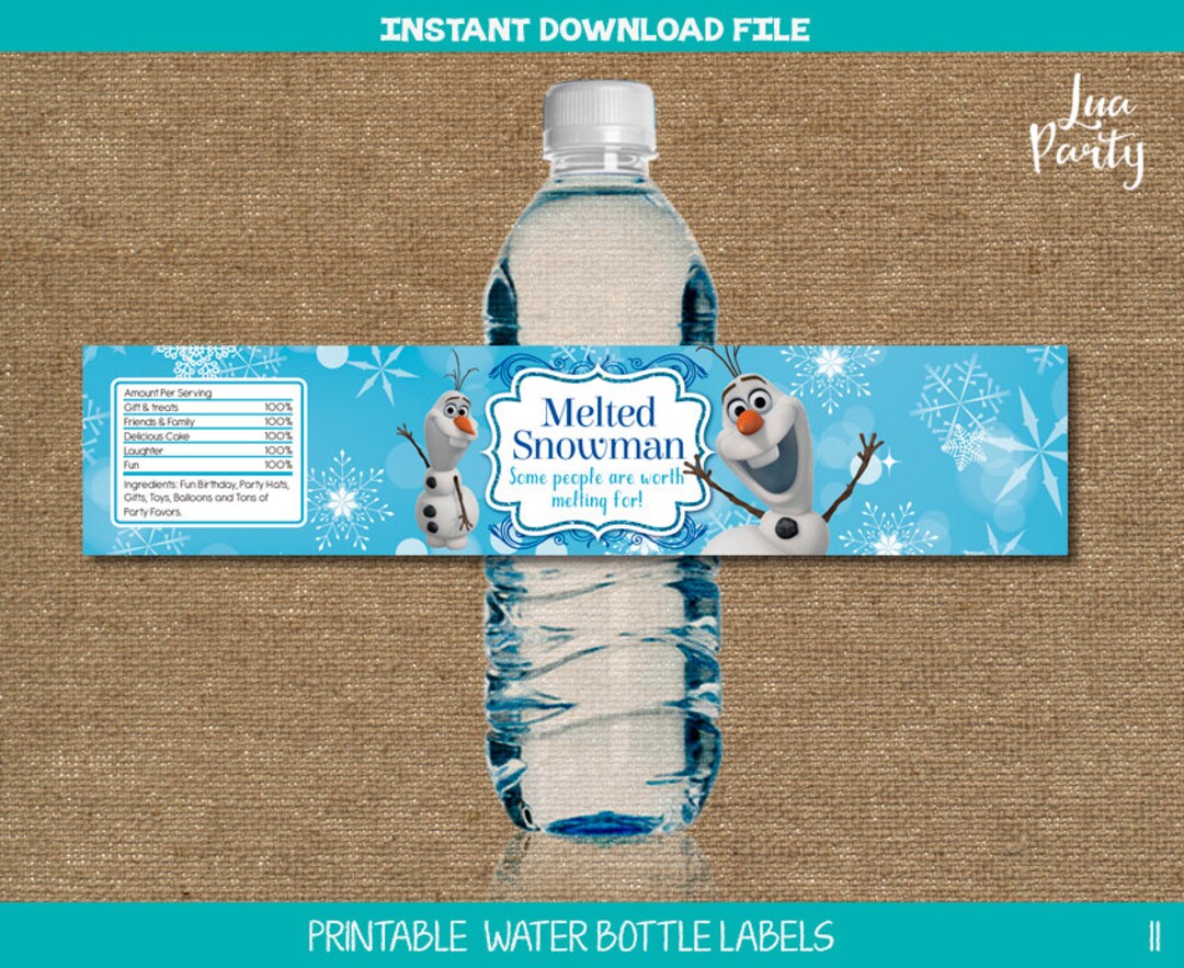 Frozen Water Bottle Labels, Printable Disney Princess water labels, Princess Elsa party water labels Instant download