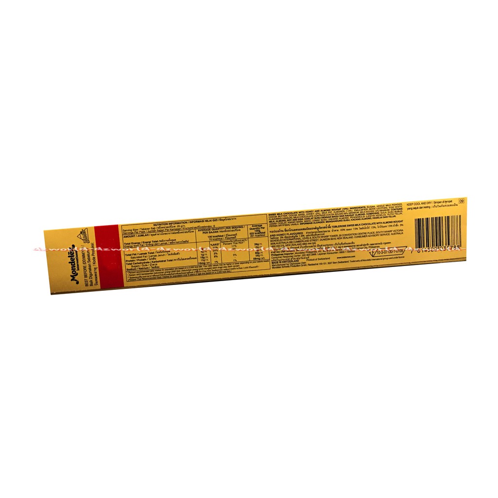 Toblerone nutrition label