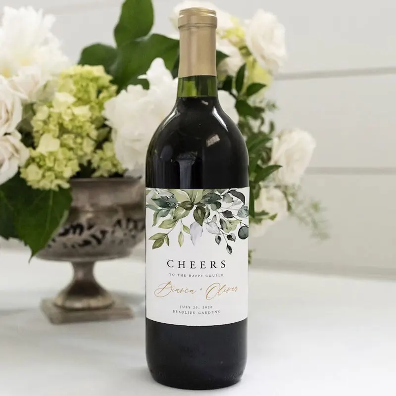 Stiker Pembungkus Botol Anggur Ulang Tahun Pernikahan Desain Pribadi Label Stiker Baptisan Pesta Pengantin Logo Khusus Hadiah Anggur