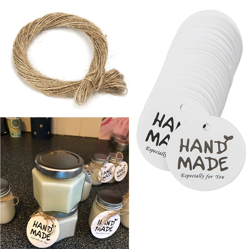 100PCS Round Handmade Especially for You Printed Tags,White Kraft Paper Gift Labels Handmade Kraft Paper Tags with 100 feet Jute Twine