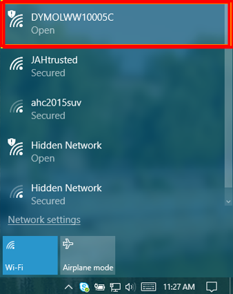 Connecting to a Wireless DYMO Label Printer (Mac & Windows) Steps to set up your wireless printer: Turn the printer on - the icon will be blue. On the bottom of your printer, there is a sticker with letters SSID: and a series of numbers and letters following. NOTE: This is going to be the name of the network we want to connect to your computer to.