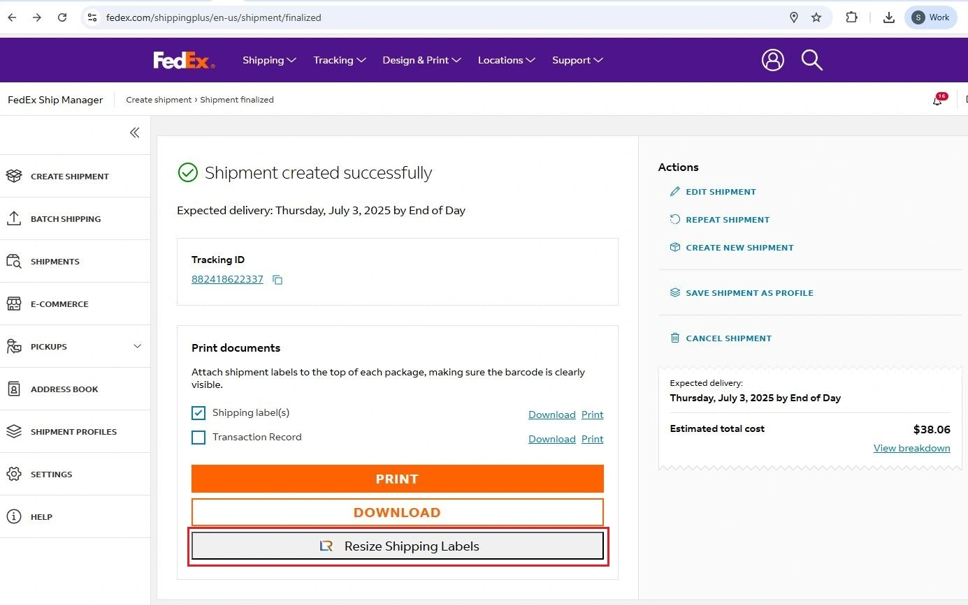 38 fedex ship manager reprint label