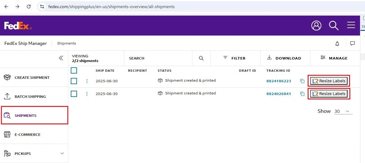 Fedex ship manager reprint label