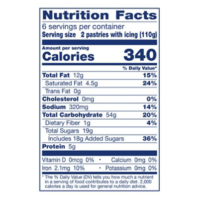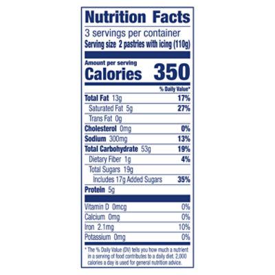 Toaster strudel Nutrition Facts & Calories - Inlivo KEY FACTS. Has very high calorie density - this means that the amount of calories you are getting from an ounce is very high (6.35 cal/oz). Very low in vitamins and minerals (0.9%/cal) - a good source of Iron and Manganese. Contains a high amount of risky components that may include saturated fat, sodium and sugars (1.68%/oz).